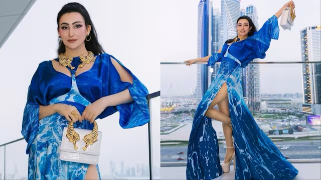 Actress Urvashi Rautela, known for her fearless fashion sense, stunned the world with her elaborate mosaic-inspired gown by Michael Cinco. The gown featured reflective elements and a dramatic silhouette that shimmered under the Cannes lights. She accessorized the look with a parrot-shaped clutch from Judith Leiber, reportedly worth over ₹4.68 lakh, and a dazzling crystal tiara, which completed her royal appearance.